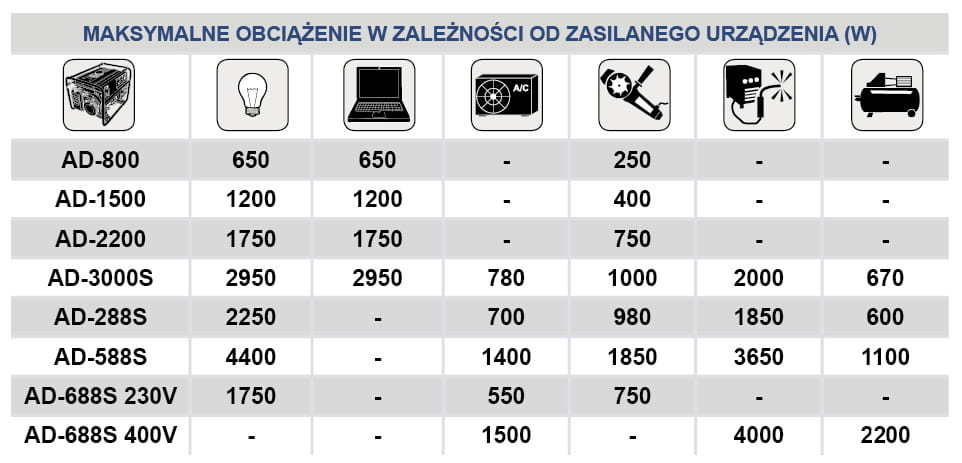 Inwertorowy Agregat prądotwórczy AD-2200S PLUS charakteryzuje się wysoką jakością wykonania i ograniczoną emisją szkodliwych spalin przez co jest ekologiczny i przyjazny dla środowiska. Urządzenie zostało wykonane zgodnie z najnowszymi wytycznymi Unijnymi dla tego typu urządzeń spełnia rygorystyczną normę emisji spalin EURO 5. Ergonomiczna, kompaktowa obudowa oraz niska waga powodują, że urządzenie jest mało kłopotliwe w transporcie i użyciu. Jakość materiałów i ich idealne spasowanie sprawia że praca z urządzeniem jest przyjemnością. AD-2200S PLUS można uruchomić za pomocą standardowej linki ręcznej lub rozrusznikiem elektrycznym z pomocą powerbanku Adler Mini_power-400 (urządzenie w zestawie z agregatem). Agregat AD-2200S PLUS wyposażony jest w zaawansowany moduł AVR - automatyczna regulacja napięcia dodatkowo utrzymujący stała częstotliwość (idealna sinusoida), pozwala to na zasilanie delikatnych urządzeń elektronicznych bez obawy o ich uszkodzenie. Agregat AD-2200S PLUS posiada gniazdo zapalniczki DC 12V/4A pozwalające na zasilanie urządzeń takich jak np przenośne lodówki turystyczne itp. oraz w dwa gniazda USB 5V/1A i 5V/2,1A pozwalające na ładowanie telefonów, tabletów i innych nowoczesnych urządzeń bezpośrednio z agregatu bez potrzeby korzystania z ładowarki. Agregat posiada tryb pracy EKO automatycznie dostosowujący obroty silnika a co za tym idzie generowaną moc do zasilanego urządzenia, oszczędzając tym samym paliwo. AD-2200S PLUS posiada także czujniki przeciążenia oraz niskiego poziomu oleju zapobiegające uszkodzeniu urządzenia. AD-2200S PLUS został wyposażony w złącze równoległe umożliwiające (za pomocą specjalnego przewodu) synchronizacje równoległą dwóch agregatów AD-2200S PLUS i dzięki temu podwojenie mocy wyjściowej. Przewód dostępny oddzielnie.