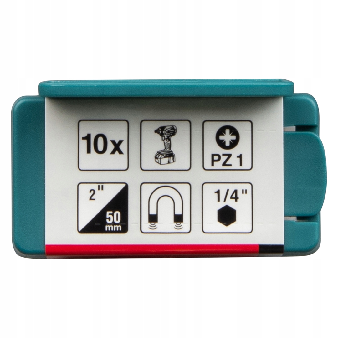 Końcówki wkrętakowe skrętne z precyzyjnym mocowaniem. Opakowanie zawiera 10 bitów Pozidrive PZ1 Impact Premier o długości 50 mm. Te magnetyczne bity są zapakowane w plastikowe pudełko dla łatwego przechowywania.