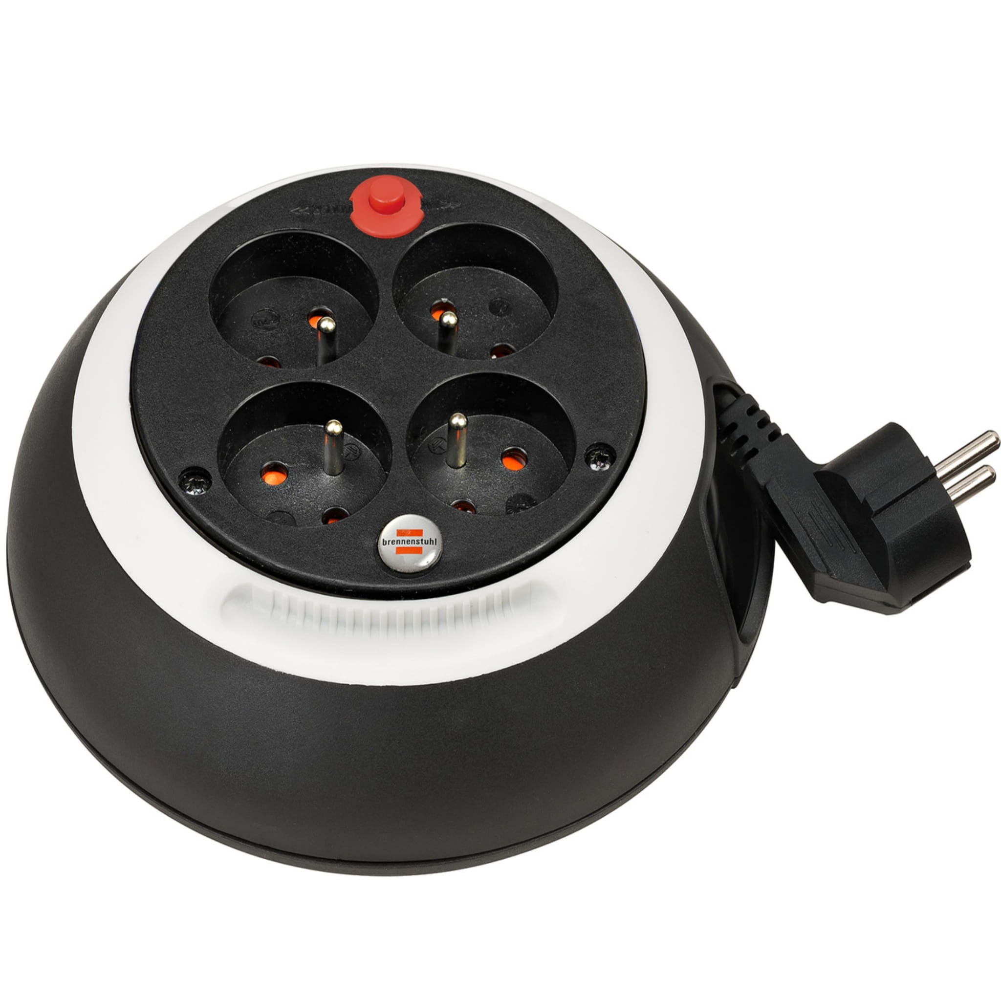 Przedłużacz bębnowy Comfort-Line CL-S firmy Brennenstuhl z kablem o długości 3 m w kolorze czarno-białym przekonuje jakością i bezpieczeństwem we wszystkich obszarach. Posiada praktyczny obrotowy pierścień, który zapewnia łatwą obsługę mini bębna kablowego. Bęben kablowy wewnętrzny posiada 4 ochronne gniazda stykowe, zabezpieczenie przed przegrzaniem oraz podwyższoną ochronę styków. Jest idealny do użytku wewnętrznego, np. w domu, biurze, a nawet w przyczepie kempingowej. Ponadto przekonuje następującymi cechami: