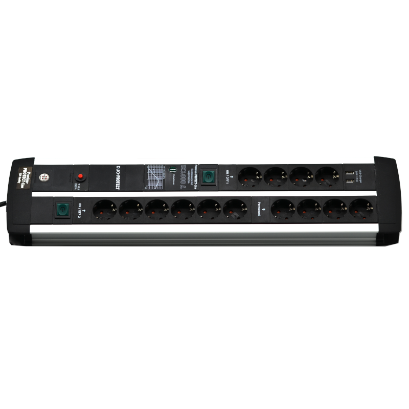 Listwa zasilająca Premium-Protect-Line 14-stykowa z zabezpieczeniem przeciwprzepięciowym i funkcją ładowania USB