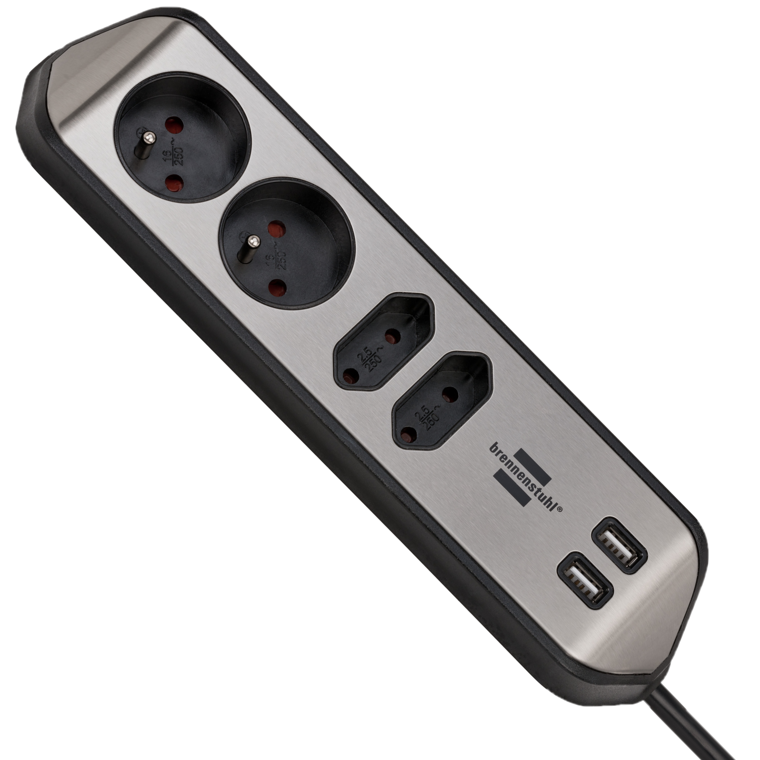 Kompaktowa narożna listwa zasilająca brennenstuhl®estilo wykonana z wysoce odpornego na złamania tworzywa sztucznego i wysokiej jakości powierzchni ze stali nierdzewnej wprowadza porządek w Twoim domu. Uniwersalna listwa nasadowa może być w prosty sposób przymocowana jako kuchenna listwa nasadowa do blatu roboczego lub jako listwa nasadowa do stołu w miejscu pracy za pomocą specjalnych podkładek samoprzylepnych. Listwa do gniazdek kuchennych lub stołowych może być montowana poziomo lub pionowo. Przekonuje on również następującymi cechami: