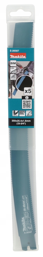 Brzeszczot do piły szablastej do cięcia metalu, żeliwa i stali nierdzewnej. Gruby i sztywny brzeszczot został zaprojektowany specjalnie do pił szablastych z imadłem łańcuchowym. Ma długość całkowitą 350 mm i długość roboczą 322 mm. Grubość brzeszczotu wynosi 1,6 mm, a liczba zębów na cal (TPI) wynosi 8. Opakowanie zawiera 5 brzeszczotów.