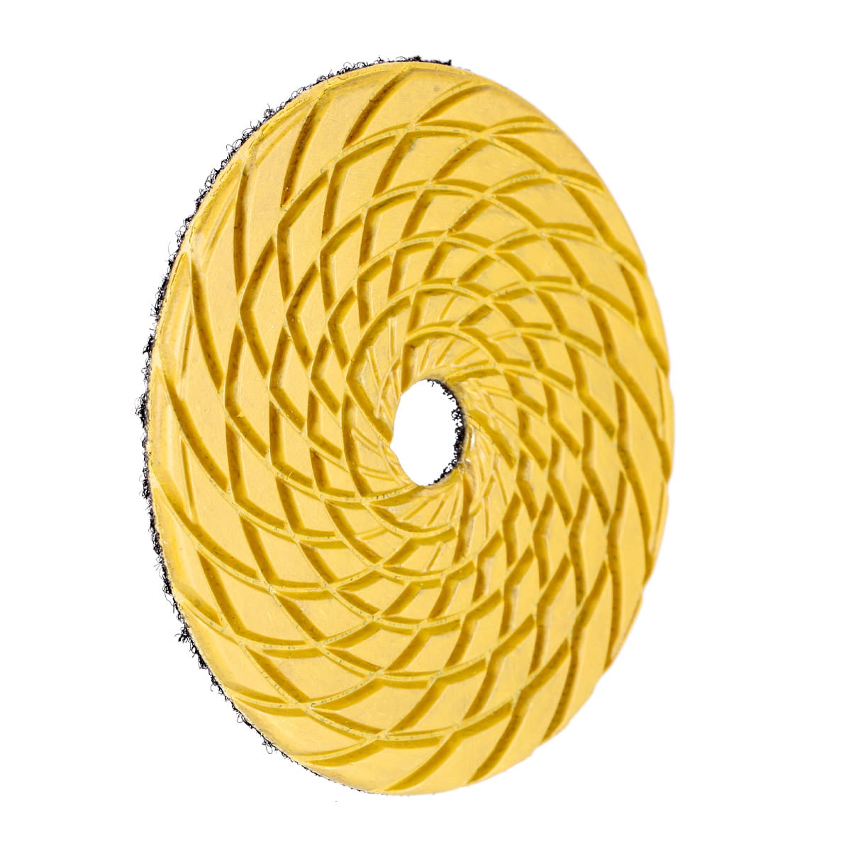 Tarcze polerskie CoolPAD są specjalnie zaprojektowane do szlifowania na sucho ceramiki i gresu na szlifierce kątowej. Skład warstwy diamentowej zapewnia niezmiennie wysoką prędkość obróbki, zapewniając najlepszą jakość powierzchni. Można dotykać glazury płytki bez obawy o uszkodzenie krawędzi. Profil warstwy w formie ""ewolwenty"" skutecznie usuwa szlam ze strefy szlifowania. Ze względu na takie właściwości jeden numer tarczy zastępuje trzy polerki o różnych ziarnach. Przykładowo, #1 zastępuje ziarna 30, 60, 120., #2 - 120, 200, 400., #3 - 400, 800, 1000. To bardzo wygodne! Przed pierwszym użyciem powierzchnię roboczą tarczy należy naostrzyć materiałem ściernym.