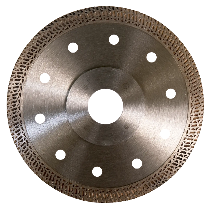 Stworzona do wykonywania cięć szybszych z umiarkowaną precyzją. Idealnie sprawdza się przy cięciu prostym i pod kątem twardego gresu, spieku porcelanowego i kwarcowego, płyt gresowych w systemach tarasów wentylowanych, klinkieru i jednokrotnie wypalanej ceramiki grubej. Dobrze skorelowana grubość dysku z kształtem ściernicy przyczynia się do spektakularnej wydajności cięcia w twardym materiale. Cienkie pasma segmentu z łatwością wrzynają się w gruby i gęsty materiał, a dzięki zminimalizowanemu kontaktowi krawędzi bocznej dynamicznie wytracają wytworzoną w tarciu temperaturę. Dyski tej budowy są żywotne i cenione za efektywność.