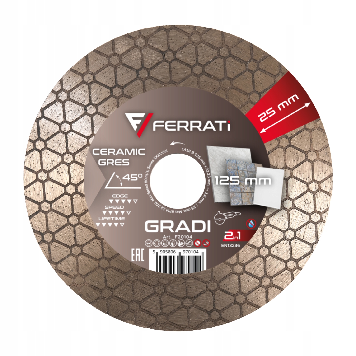 FERRATI TARCZA DIAMENTOWA TNĄCO SZLIFUJĄCA DO GRESU 45° GRADI 125mm