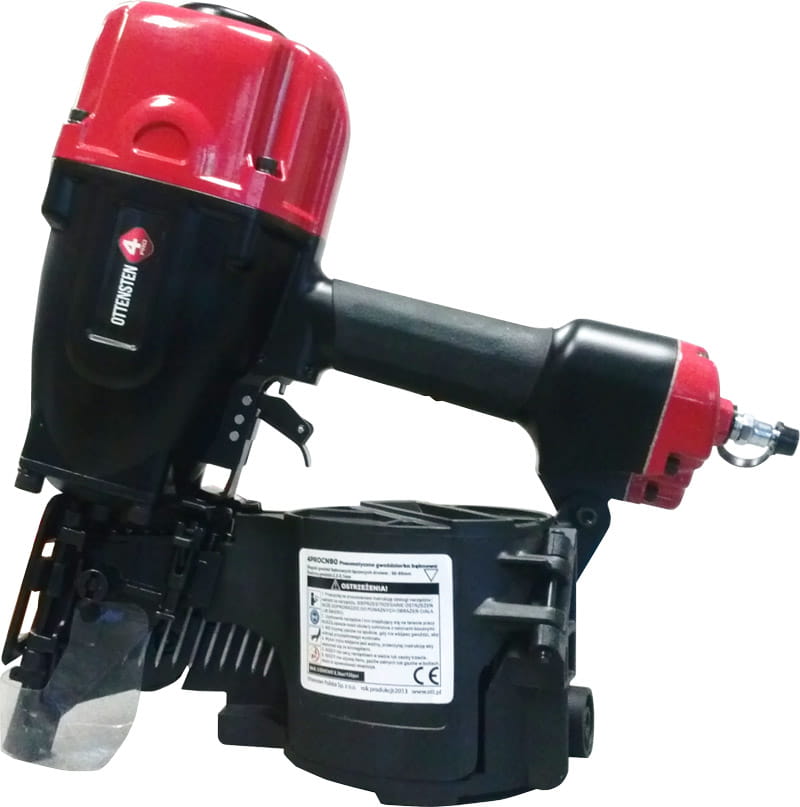 Gwoździarka pneumatyczna bębnowa to w pełni profesjonalne narzędzie, charakteryzujące się dużą trwałością i wytrzymałością. Gwoździarka 4PROCN90 to standardowa paleciarka na gwoździe bębnowe (łączne drutem): gładkie, ryflowane i skrętne. Testowana w zakładach zajmujących się produkcją palet, opakowań drewnianych i firmach produkujących drewnianą galanterię ogrodową. Szybkostrzelna (do 3 strzałów na sekundę) o niskiej wadze, pozwalająca na uzyskanie dużej zwrotności i elastyczności w pracy, a jednocześnie nie obciążającej nadmiernie i niewłaściwie układu ruchu co jest jest przyczyną wielu urazów i dolegliwości układu mięśniowo-szkieletowego. Gwoździarka bębnowa szybko i precyzyjnie reaguje na mechanizm wyzwalacza, standardowy pojemny i łatwy do załadowania magazynek, gumowa rękojeść podnosząca komfort pracy.