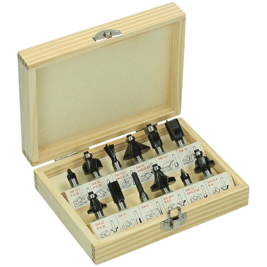 - 12 frezów do drewna w praktycznym drewnianym pudełku zamykanym na zatrzask