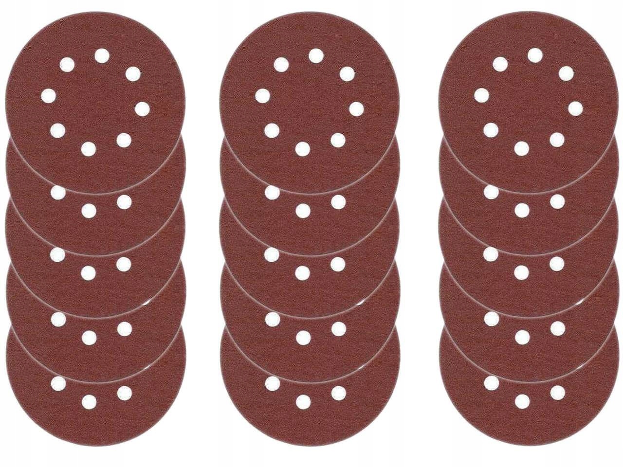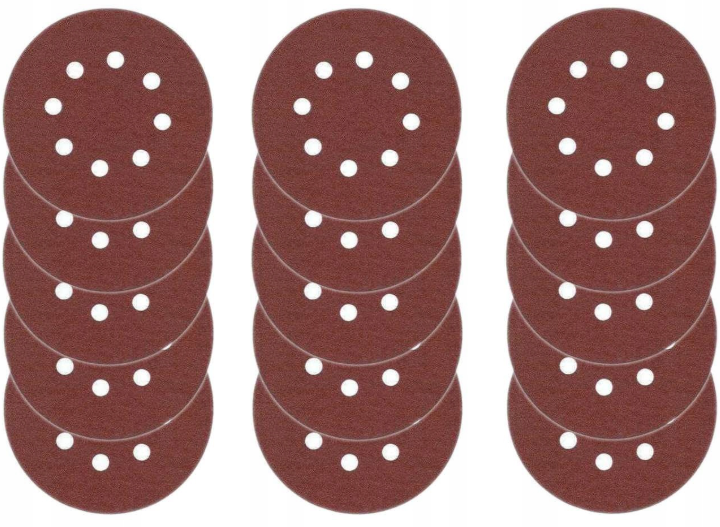Zestaw krążków ściernych 125mm K60/80/120 15 szt. Hikoki 753100 to zestaw 15 papierów ściernych o trzech najbardziej popularnych granulacjach: 60, 80 i 120. Praktyczne zastosowanie papierów ściernych zaczynamy od tych z najwyższą gradacją (P60) w celu zdjęcia pierwotnej warstwy materiału. Kolejnym krokiem jest użycie papieru P80, a na koniec w celu wykończenia - papieru o ziarnach P120. Papiery mocowane są za pomocą rzepów, które umożliwiają szybką wymianę, a 8 otworów w środkowej części krążków pełnią funkcję wewnętrznego odsysania pyłu. Dużym atutem jest wysoka jakość materiałów, z których zostały wykonane papiery ścierne - cechują się trwałością zapobiegając wykruszaniu się ziaren. Przeznaczone są głównie do wszelkiego rodzaju drewna, a także do płyt wiórowych, budowlanych oraz metalu.