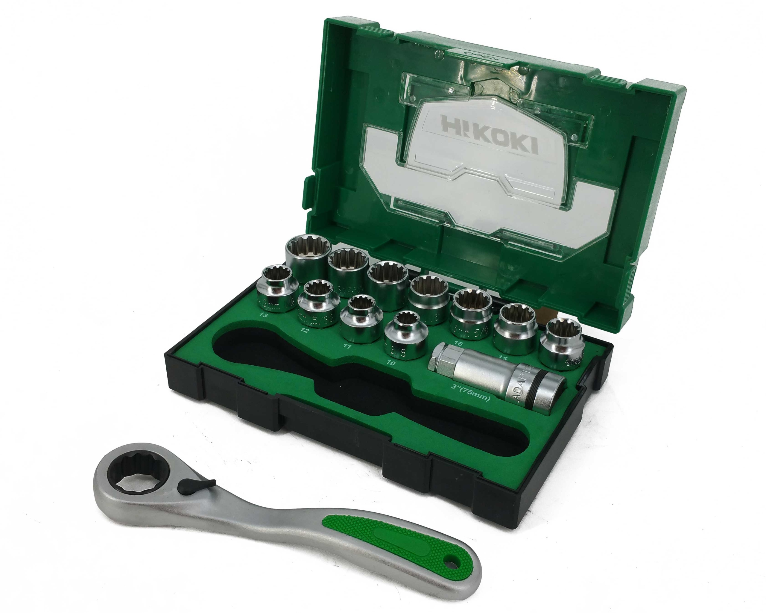 HIKOKI ZESTAW NASADEK KLUCZY GRZECHOTKĄ DWUNASTOKĄTNE 1/2" 13 El. 40030033