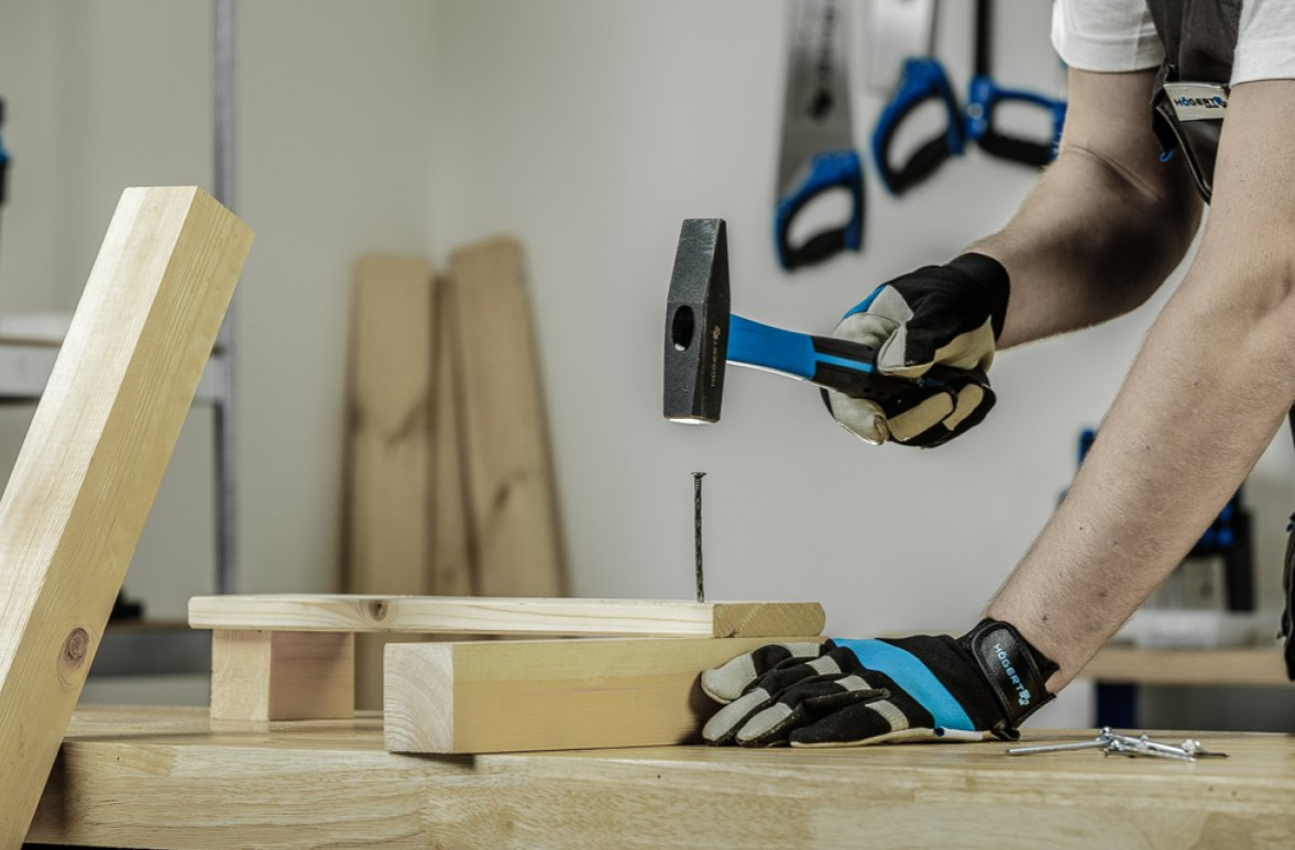 Młotek ślusarki z rękojeścią z włókna szklanego do wykonywania prac remontowo-budowlanych.