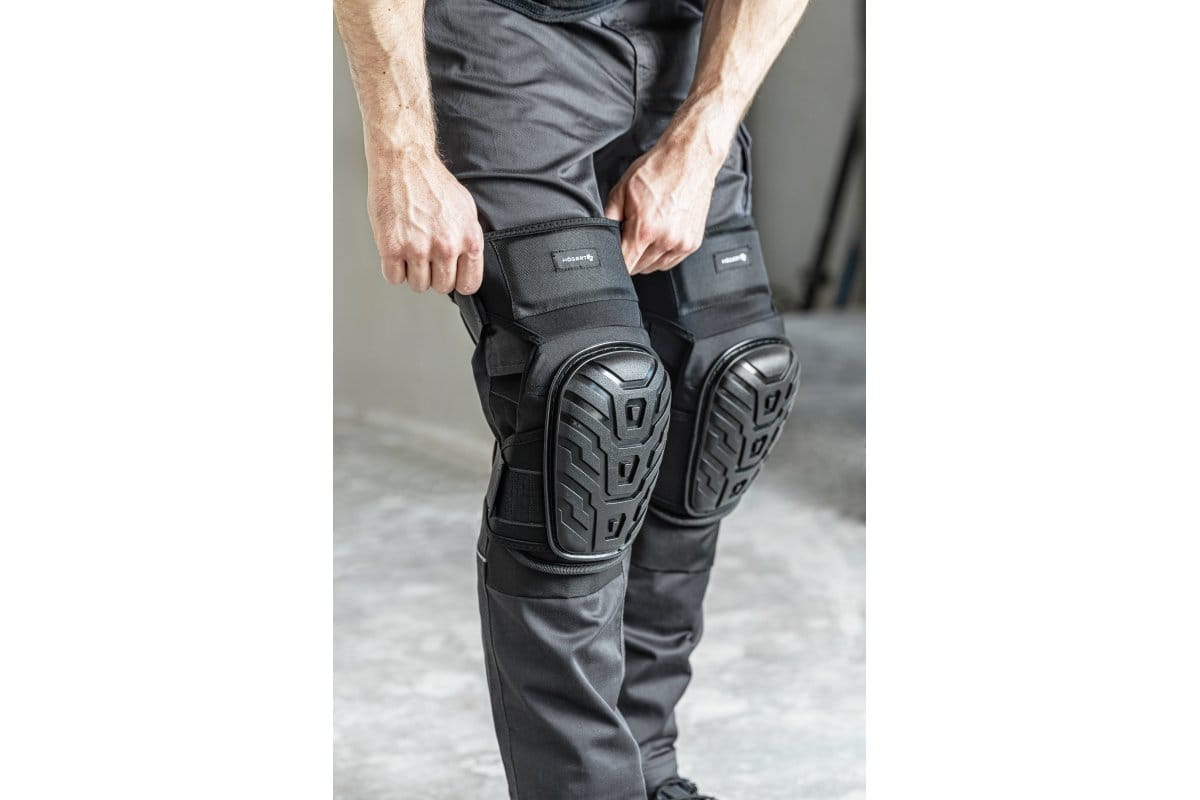 Nakolanniki ochronne LUIS stanowią ochronę kolan podczas długotrwałych prac w pozycji klęczącej. Wykonane z wytrzymałego poliestru, spełniają normę EN14404. Wewnętrzna strona jest wypełniona żelem i pianką EVA, co zapewnia optymalną amortyzację i komfort użytkowania. Zewnętrzne nasadki zostały wykonane z PVC i skutecznie chronią kolana przed uderzeniami. Nakolanniki są wyposażone w elastyczne paski z rzepami, co umożliwia łatwe dopasowanie. Nakolanniki są stabilnie osadzone na nodze, lekkie i uniwersalne, świetnie sprawdzą się w pracach budowlanych, remontowych, instalacyjnych i ogrodowych.