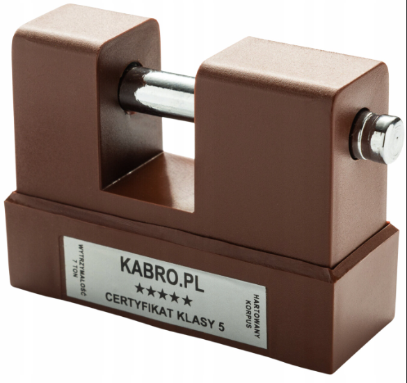 Atestowana kłódka trzpieniowa stalowa brązowa KABRO C5 Klasa 5 zabezpieczeń. 3 klucze. Certyfikat IMP.