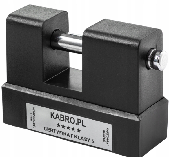Stalowa kłódka trzpieniowa KABRO C5 wyróżnia się dużą wytrzymałością mechaniczną, co potwierdza otrzymany przez nią certyfikat wysokiej klasy. Konstrukcja mechanizmu bębenkowego i klucza zapewniają dużą ilość kombinacji oraz trudność otwarcia. Podczas prób w Laboratorium Kryminalistycznym KG Policji mechanizm ten nie został otworzony.