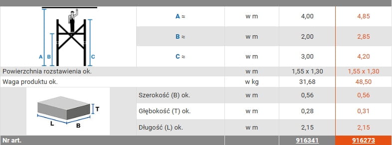- Obciążenie pomostu 150kg/m² według EN 1004