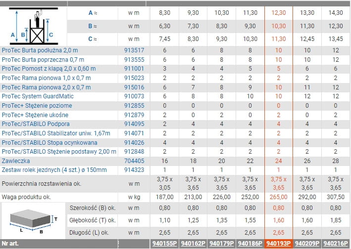- Od wysokości roboczej 7,30 m rusztowania ProTec wyposażone są w łatwo montowane podpory, zapewniające dodatkową stabilizację i bezpieczne użytkowanie