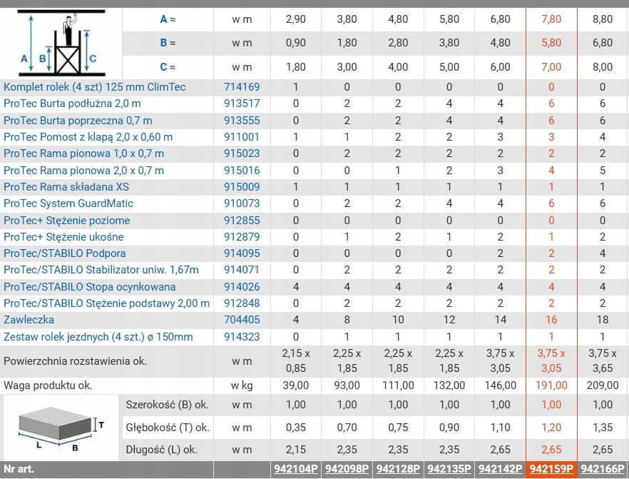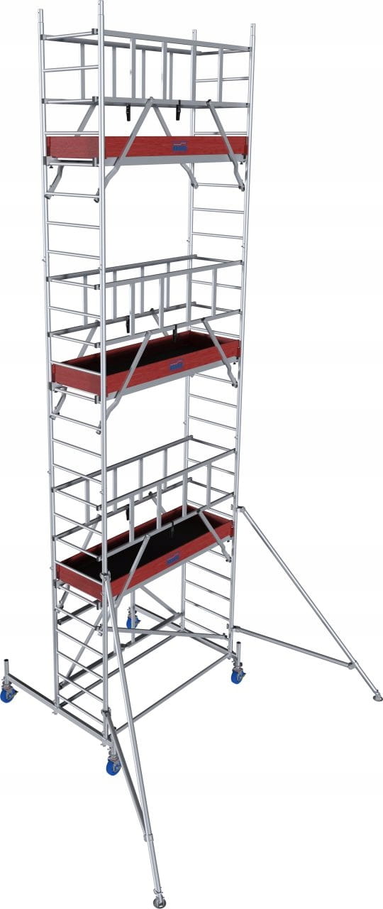 - Zmontowane rusztowanie podstawowe w wysokości 1,80 może bez problemu przejeżdżać przez otwory drzwiowe i może być rozbudowywane do 13,80 m wysokości roboczej