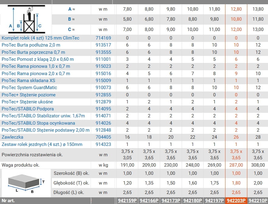 - Zmontowane rusztowanie podstawowe w wysokości 1,80 może bez problemu przejeżdżać przez otwory drzwiowe i może być rozbudowywane do 13,80 m wysokości roboczej