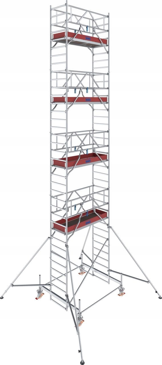 - Uniwersalne aluminiowe rusztowanie jezdne do prac prowadzonych na wysokości max. do 14,40 m (przy długości pola roboczego 2,00 m do 12,50 m)