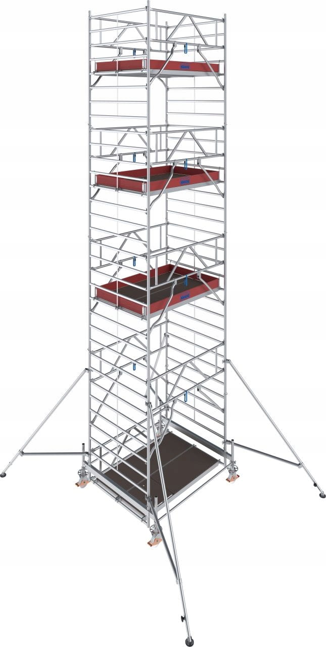 - Uniwersalne aluminiowe rusztowanie jezdne do prac prowadzonych na wysokości max. do 14,40 m (przy długości pola roboczego 2,00 m do 12,50 m)