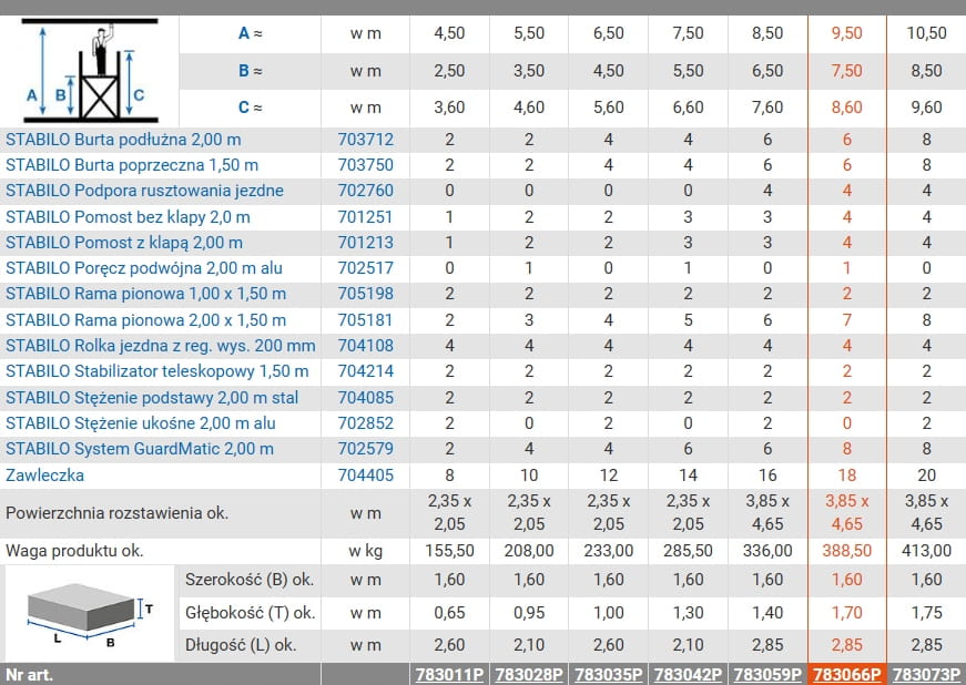 STABILO 500 RUSZTOWANIE JEZDNE 9,50M 2,00x1,50M