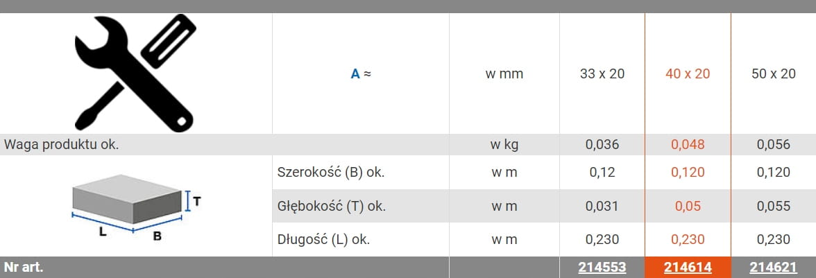 STOPKI 2K 40X20MM POMARAŃCZOWE 2 SZTUKI