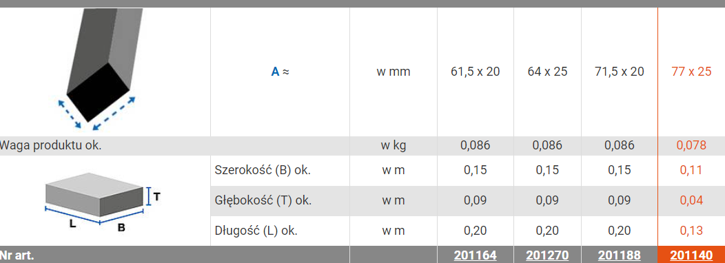 STOPY DO DRABIN SERII CORDA 77x25MM