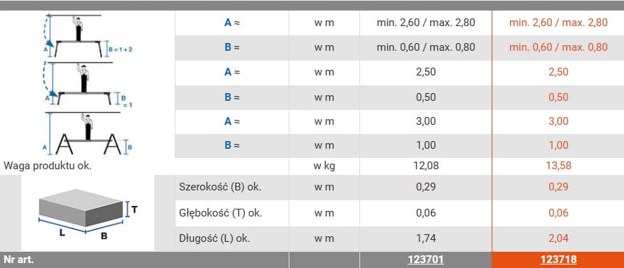 - Platforma rozsuwana w zakresie ok. 1,75 m – 3,50 m