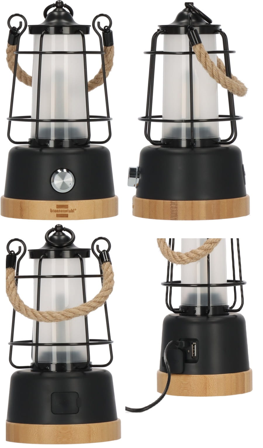 Bezstopniowo ściemniana lampa kempingowa z wytrzymałą liną konopną i bambusową podstawą jest idealnym źródłem światła podczas różnych aktywności na świeżym powietrzu, takich jak biwakowanie. Za pomocą pokrętła można nie tylko regulować jasność, ale także kolor światła. Lampka kempingowa z praktyczną funkcją powerbanku do ładowania smartfonów i nie tylko przekonuje następującymi cechami: