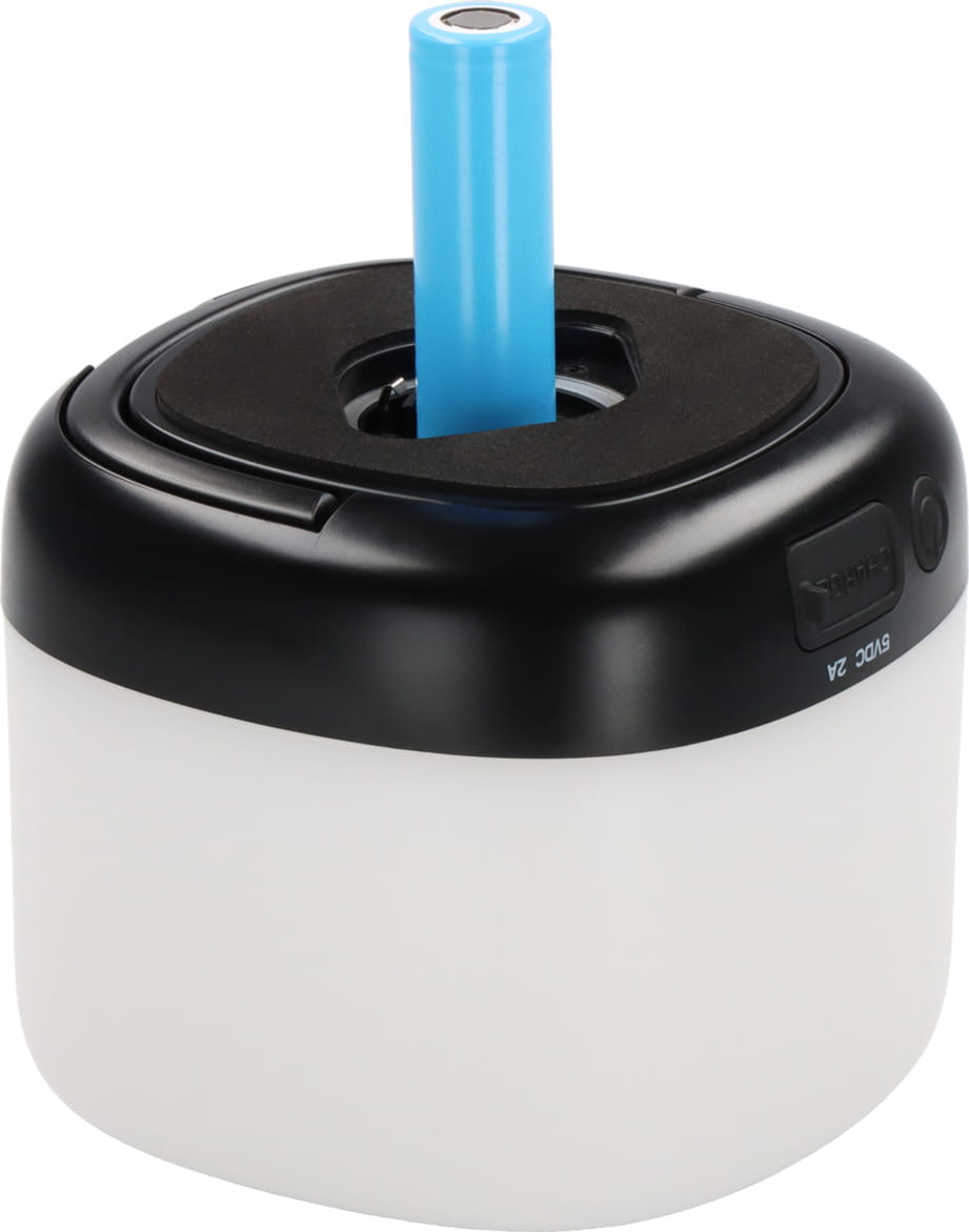 - Lampa zewnętrzna z wymiennym standardowym akumulatorem litowo-jonowym 18650 o napięciu 3,6 V i pojemności 3 Ah, który można wygodnie ładować za pomocą kabla USB typu C lub alternatywnie za pomocą panelu słonecznego