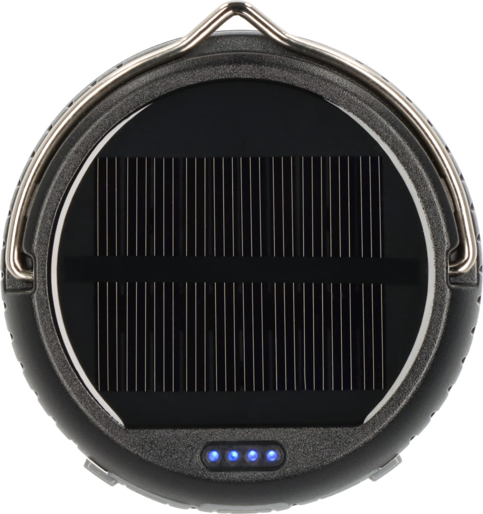 - Zewnętrzna lampa LED z dodatkową funkcją SOS i funkcją migania w sytuacjach awaryjnych charakteryzuje się również materiałami odpornymi na promieniowanie UV - jako kolejna funkcja, lampa może świecić podczas ładowania