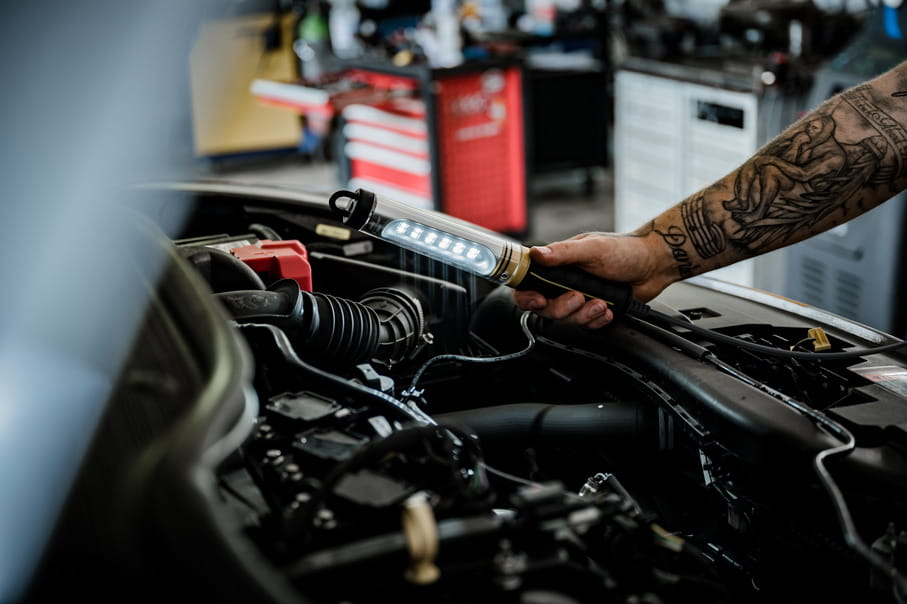 - Lampa robocza LED z przełącznikiem i różnymi poziomami przełączania: 100% - 40% - 10% dla regulowanej jasności i jeszcze dłuższego czasu świecenia