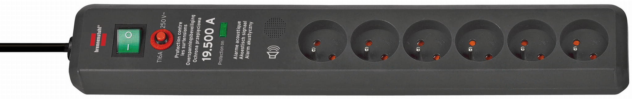 Listwa zasilająca Secure-Tec 6 firmy Brennenstuhl w kolorze antracytu, z akustycznym sygnałem ostrzegawczym i 3-metrowym kablem zachwyca jakością i bezpieczeństwem we wszystkich obszarach. Posiada on nie tylko zwiększoną ochronę przed dotykiem, ale również przekonuje następującymi cechami: