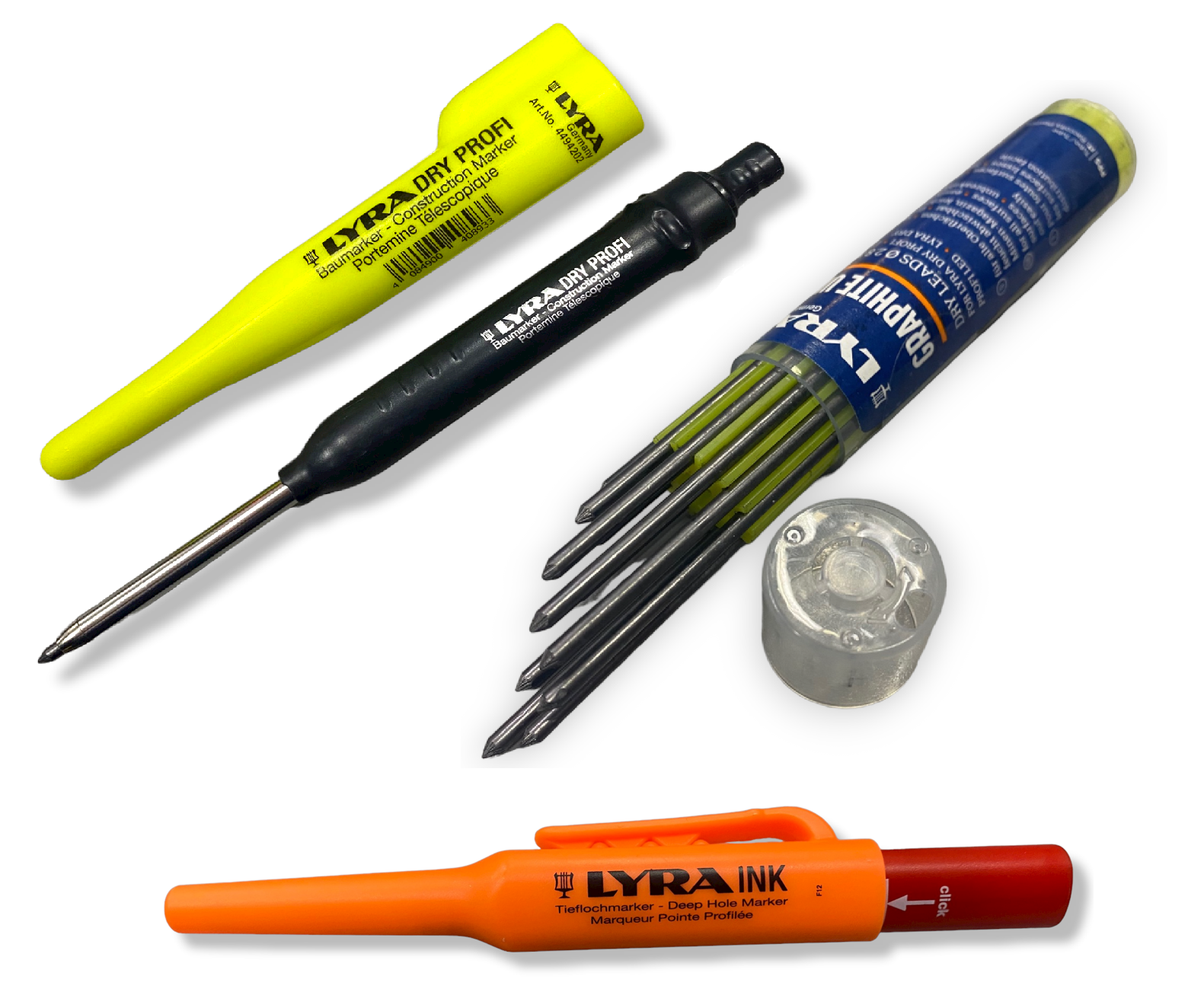 Lyra Dry Profi to prosty w budowie znacznik który pomaga podczas wszelkich prac budowlanych, stolarskich, instalatorskich oraz podczas domowego majsterkowania. Ołówek został wyposażony w mechanizm automatycznego wysuwania wkładu po wciśnięciu przycisku na jego górnej części. Dzięki temu jest łatwy w obsłudze, nawet jedną ręką. Znacznik ten posiada także zintegrowaną temperówkę zlokalizowaną w kaburze. LYRA wyposażyła model DRY PROFI w zgrabną kaburę z zaczepem który możemy zamocować do spodni lub paska.