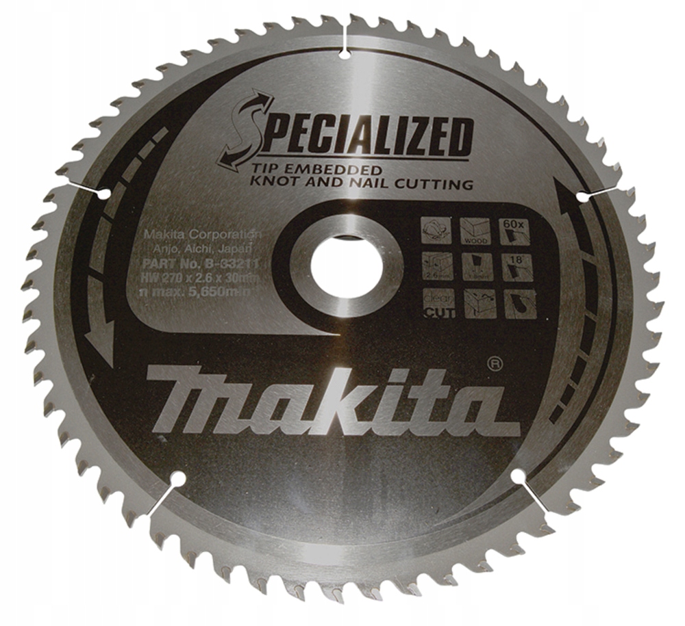 MAKITA B-33211 TARCZA TNĄCA SPECIALIZED T.C.T, 270 x 30 mm, 60 Z