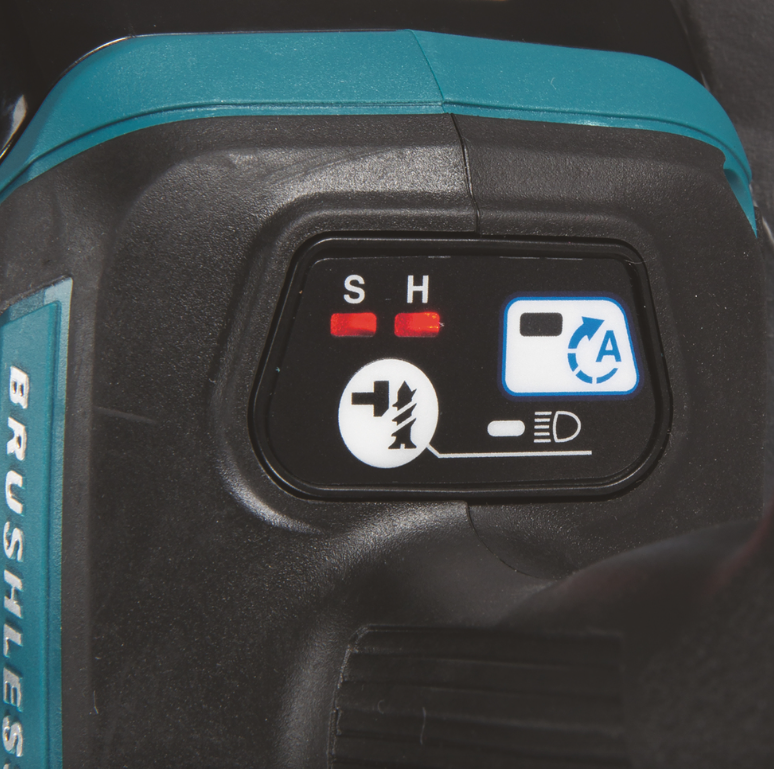 Bezszczotkowa, akumulatorowa 2-biegowa wkrętarka udarowa z elektronicznym przełącznikiem prędkości obrotowej.