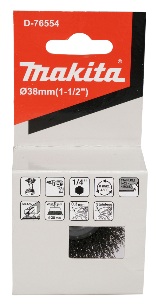 MAKITA D-76554 SZCZOTKA DRUCIANA GARNKOWA 38mm 1/4'' NA WIERTARKĘ INOX