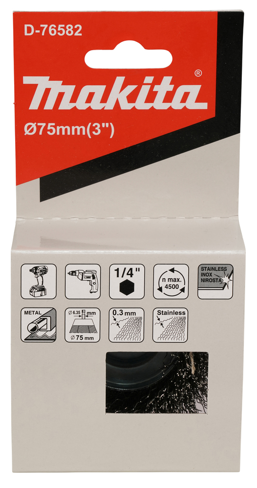 MAKITA D-76582 SZCZOTKA DRUCIANA GARNKOWA 75mm 1/4'' NA WIERTARKĘ INOX