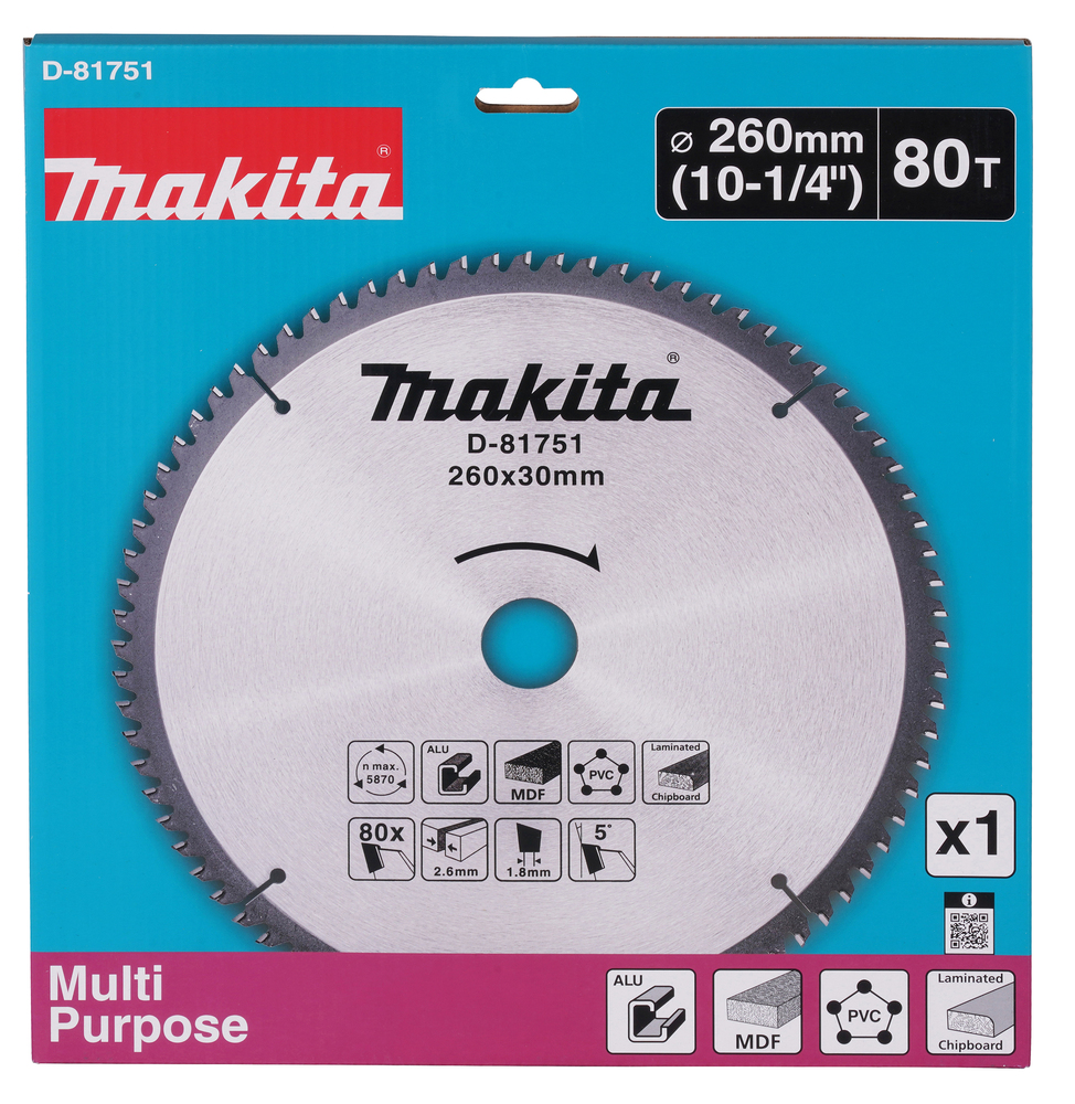 MAKITA D-81751 TARCZA UNIWERSALNA 260 x 30 mm DO ALUMINIUM PVC MDF
