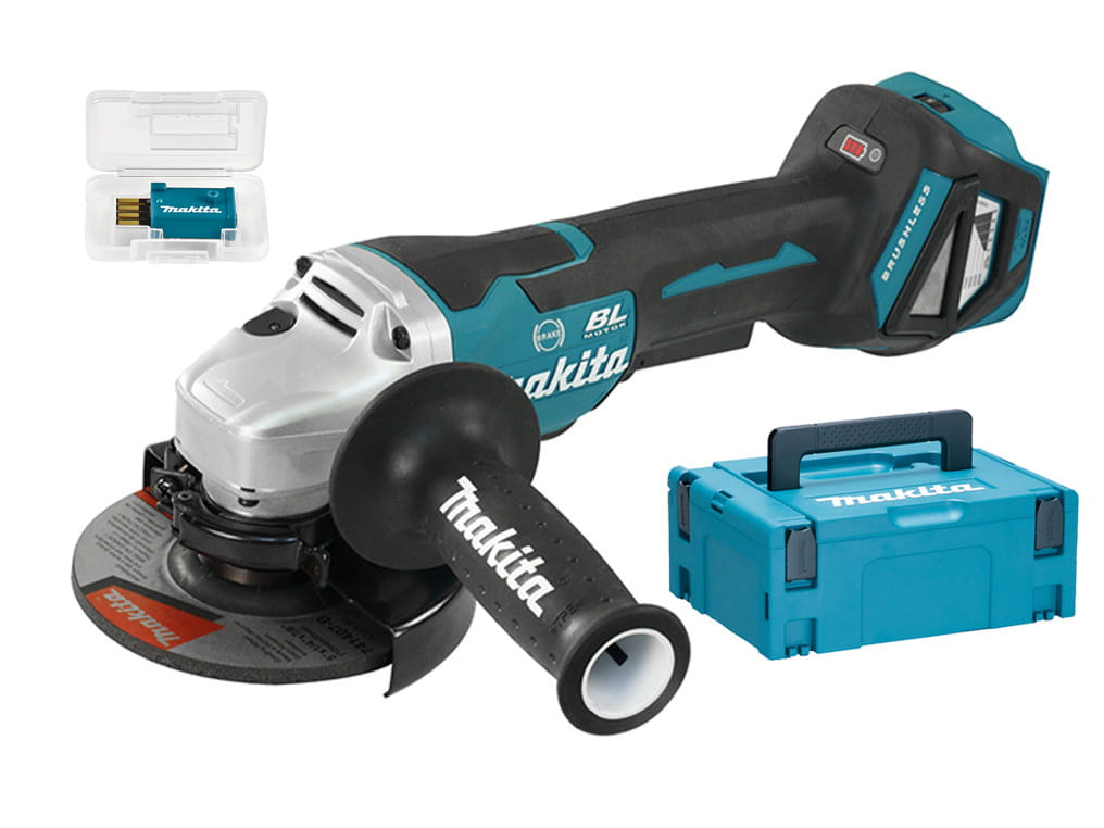 - Akumulatorowa szlifierka kątowa o wysokiej mocy do tarcz o średnicy 125 mm zasilana akumulatorem Li-Ion 18 V
