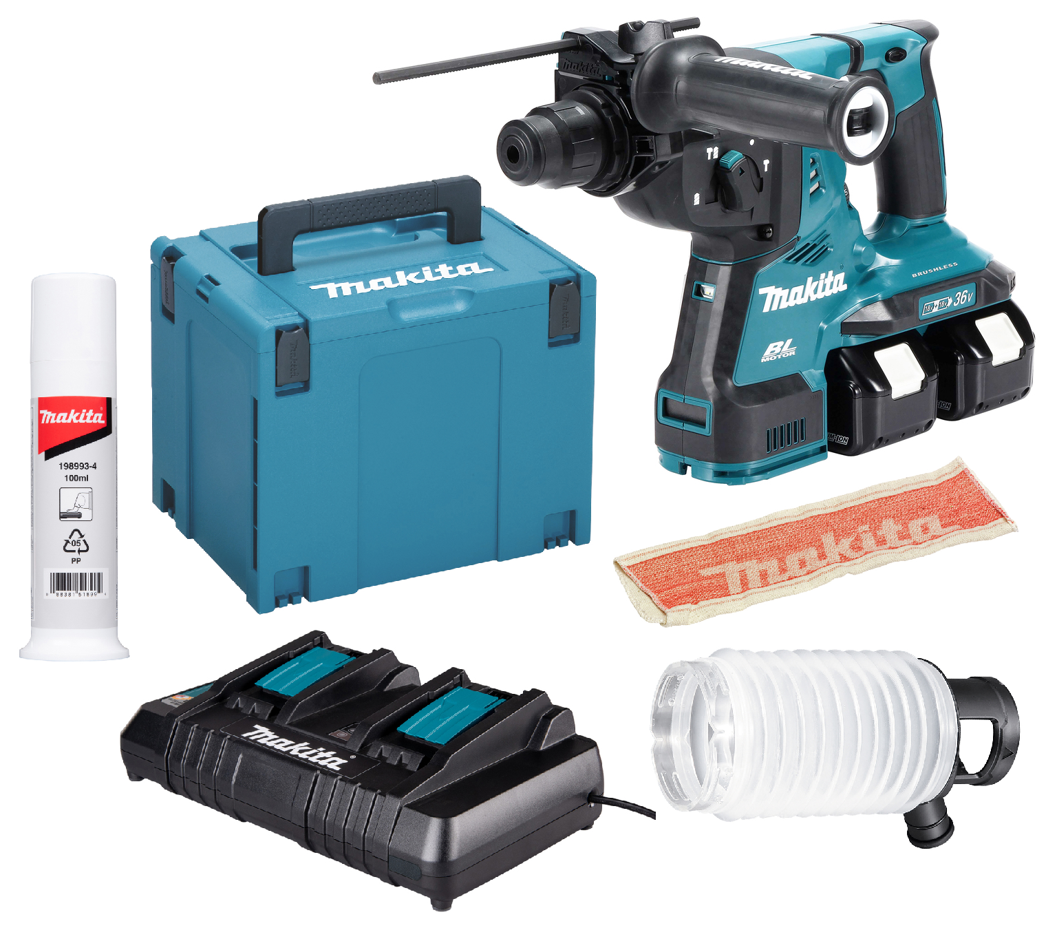 MAKITA DHR280PT2J MŁOTOWIERTARKA Z PODKUWANIEM 2x18V SDS-Plus 28mm 2,8J AVT