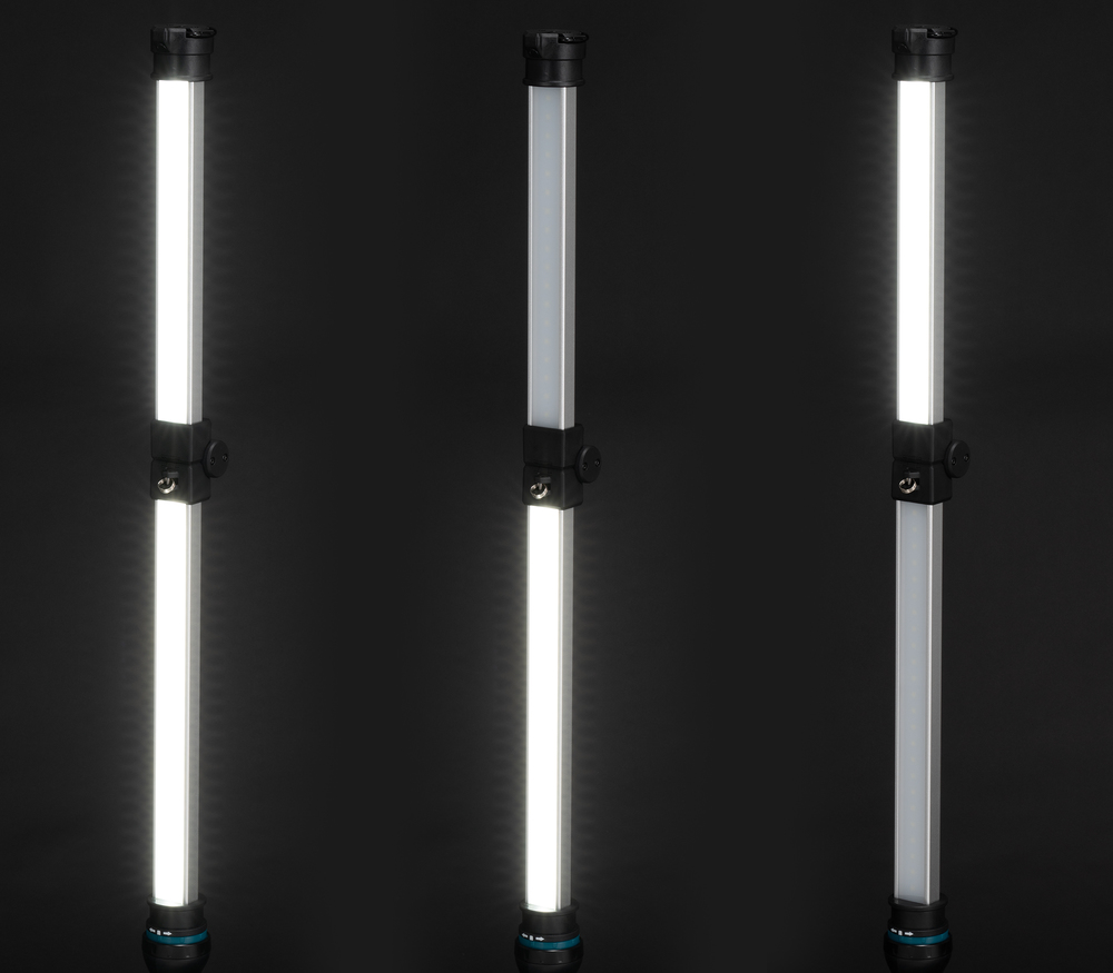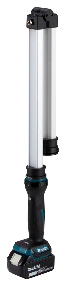 Składana lampa warsztatowa LED może być zasilana akumulatorami LXT 14,4 V i 18 V. Posiada 3 tryby świecenia z funkcją pamięci i 3 poziomy jasności (1700 / 800 / 400 lumenów).