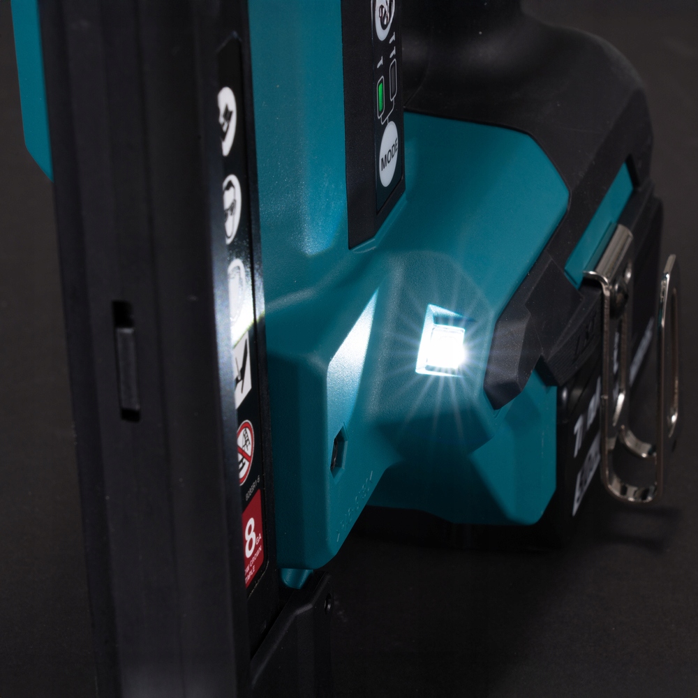 Doskonałą widoczność miejsca wbijania zapewnia wąska końcówka stykowa, która pozwala na precyzyjne ustawienie narzędzia nawet w trudno dostępnych miejscach. Dodatkowo, obszar roboczy oświetla jasna dioda LED z funkcją opóźnionego wygaszania, co ułatwia pracę w ciemniejszych przestrzeniach oraz poprawia dokładność.