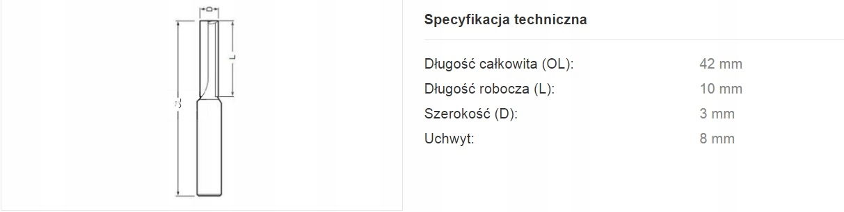 FREZ PROSTY 8MM 3X10MM (2 ROWKI)
