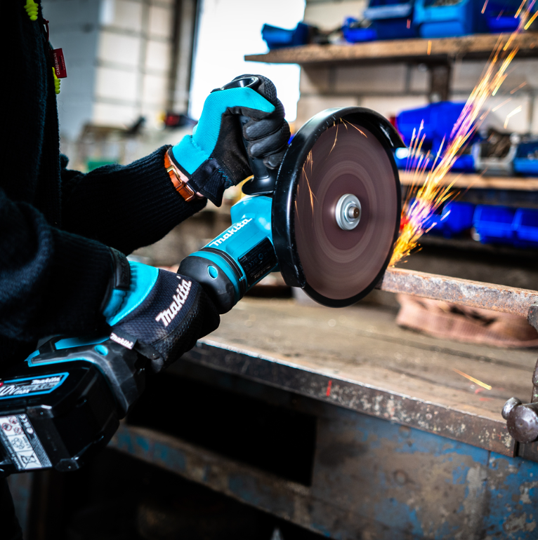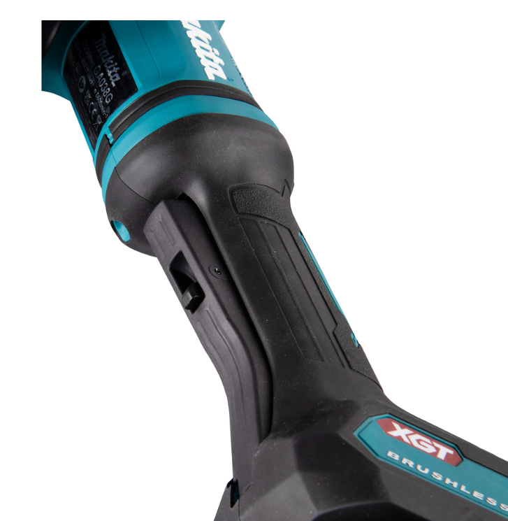 Akumulatorowa szlifierka GA038G kątowa z tarczą 230 mm do ciężkich zastosowań, zasilana jest akumulatorem 40V max Li-Ion XGT®. Zapewnia dużą prędkość obrotową 6600 obr./min, dzięki czemu sprawia, że narzędzie porównywalne jest ze szlifierkami sieciowymi. Posiada dużą dźwignię włącznika z zabezpieczeniem chroniącym przed przypadkowym uruchomieniem. Wyposażona w system AWS, który umożliwia bezprzewodowe połączenie odkurzacza oraz elektronarzędzia przy pomocy modułu Bluetooth, dzięki czemu odkurzacz uruchamia się automatycznie w momencie uruchomienia narzędzia. Dodatkowym atutem szlifierki jest zastosowanie Technologii AFT, która automatycznie wyłącza narzędzie w przypadku nagłego spowolnienia lub zatrzymania tarczy (tzw. kick-back). Wyposażona w funkcję łagodnego rozruchu i hamulec elektryczny.