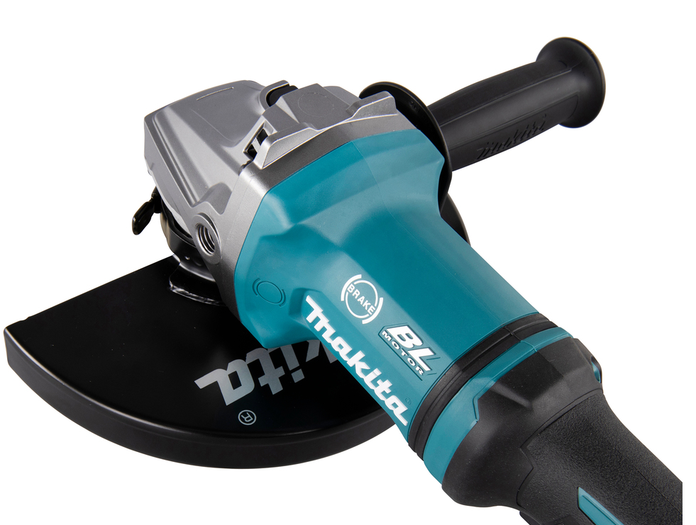 Akumulatorowa szlifierka kątowa z tarczą 230 mm do ciężkich zastosowań, zasilana akumulatorem 40V max Li-Ion. Duża dźwignia włącznika z zabezpieczeniem chroniącym przed przypadkowym uruchomieniem i prędkość 6600 obr./min. Posiada system AWS, który umożliwia bezprzewodowe połączenie odkurzacza oraz elektronarzędzia przy pomocy modułu Bluetooth, dzięki czemu odkurzacz uruchamia się automatycznie w momencie uruchomienia narzędzia.