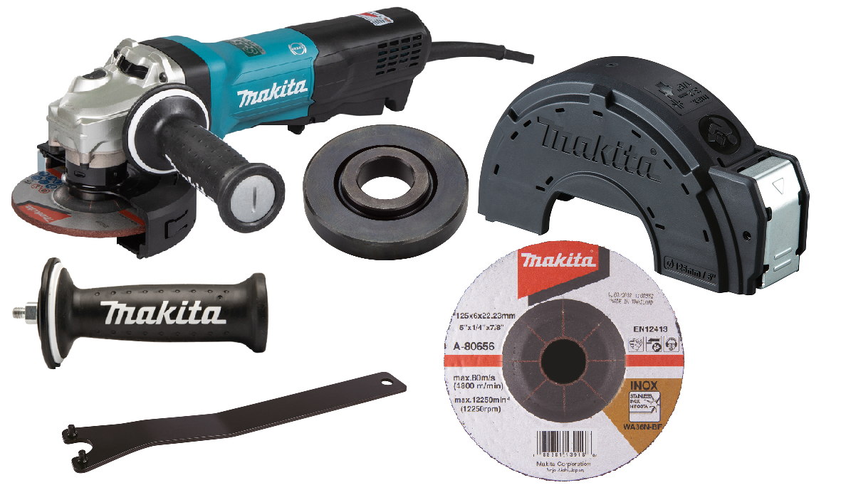 Szlifierka kątowa o wysokiej wytrzymałości, z technologią AFT - Active Feedback Sensing - automatyczne wyłączenie narzędzia w celu ochrony użytkownika w przypadku nagłego spowolnienia lub zatrzymania tarczy (tzw. kick-back). Posiada system SJS II, stworzony w celu efektywnego tłumienia wibracji. Wyposażony w duży włącznik spustowy.
