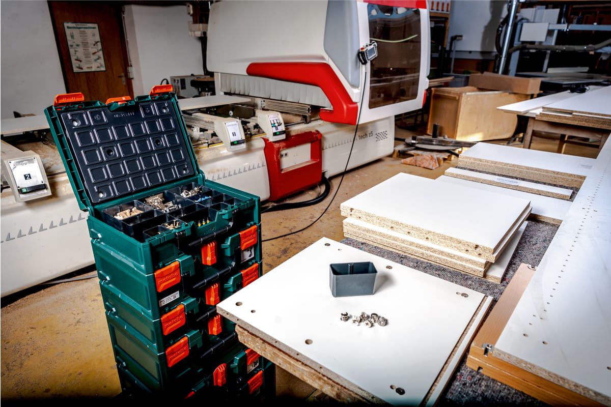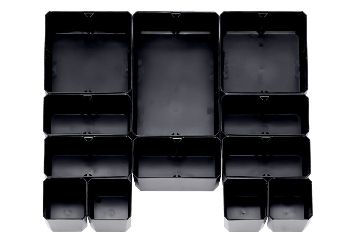 - Maksymalna przejrzystość dzięki 12 dowolnie ustawianym skrzynkom Sortimo w 4 różnych rozmiarach