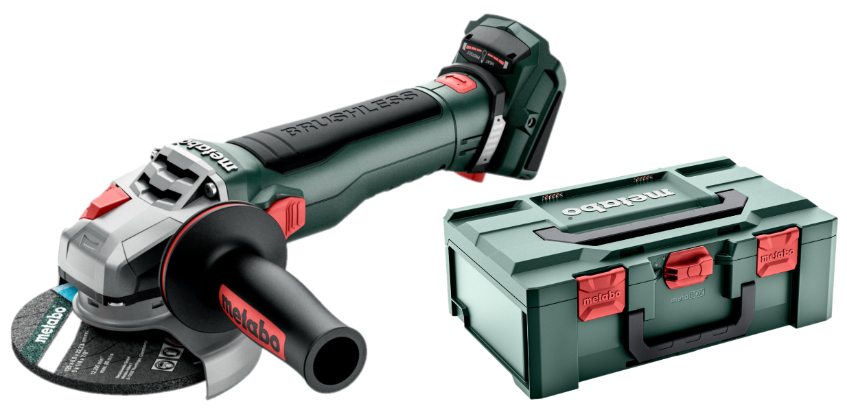 - Mechaniczne sprzęgło przeciążeniowe Metabo S-automatic: w przypadku zablokowania tarczy minimalizuje zjawisko odrzutu do najniższego poziomu spotykanego na rynku, zapewniając maksymalną ochronę użytkownika
