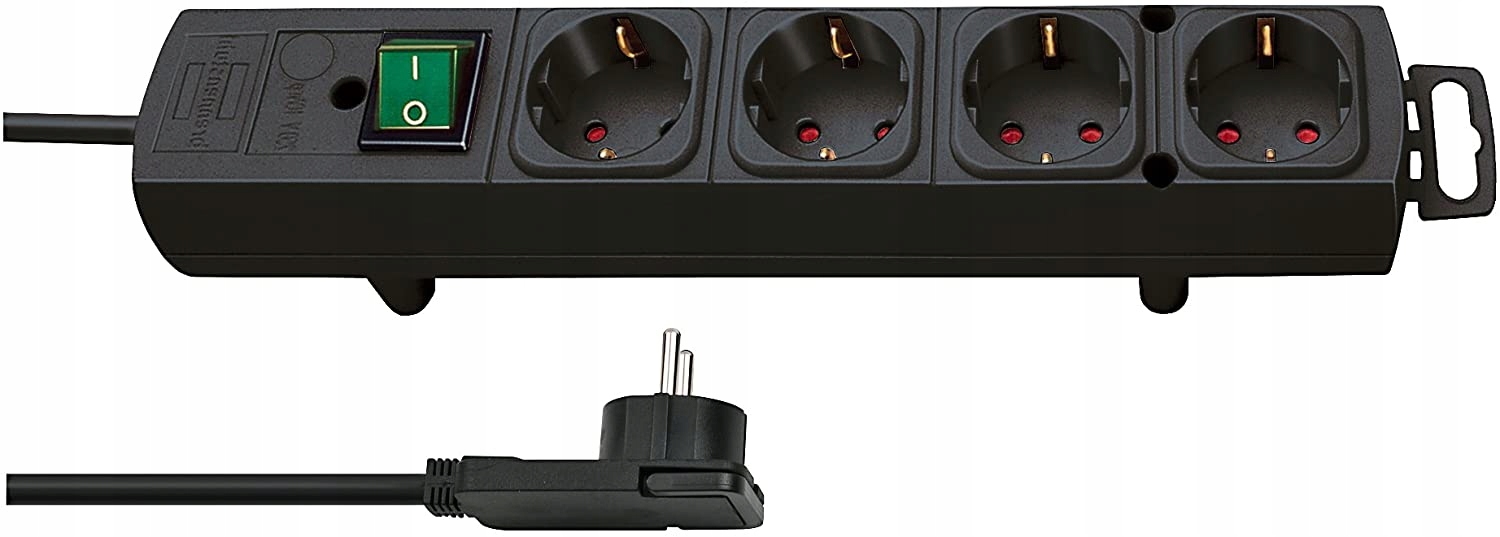 Brennenstuhl 1153100100 Listwa zasilająca Comfort-Line Plus 4 gniazda (z wtyczką płaską, włącznikiem, kablem 2m i szerokim rozstawem gniazd) czarna