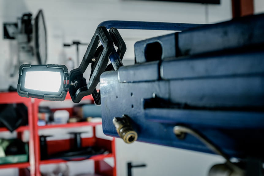 - Lampa robocza LED z urządzeniem zaciskowym dla większej elastyczności i funkcji, dzięki szerokości mocowania do 55 mm, do użytku domowego i rzemieślniczego lub w warsztatach